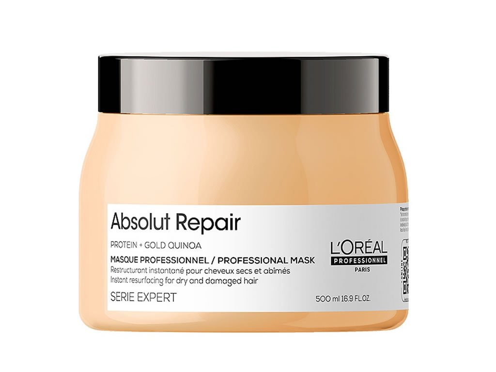 A fórmula dourada da Máscara Absolut Repair Gold Quinoa + Protein Golden L'Oréal Professionnel atua na reparação da fibra capilar para que o cabelo revele uma aparência mais saudável. Sua textura inovadora permite unir o poder de tratamento dos ativos com a leveza de um gel, e as partículas douradas conferem brilho intenso aos fios.
