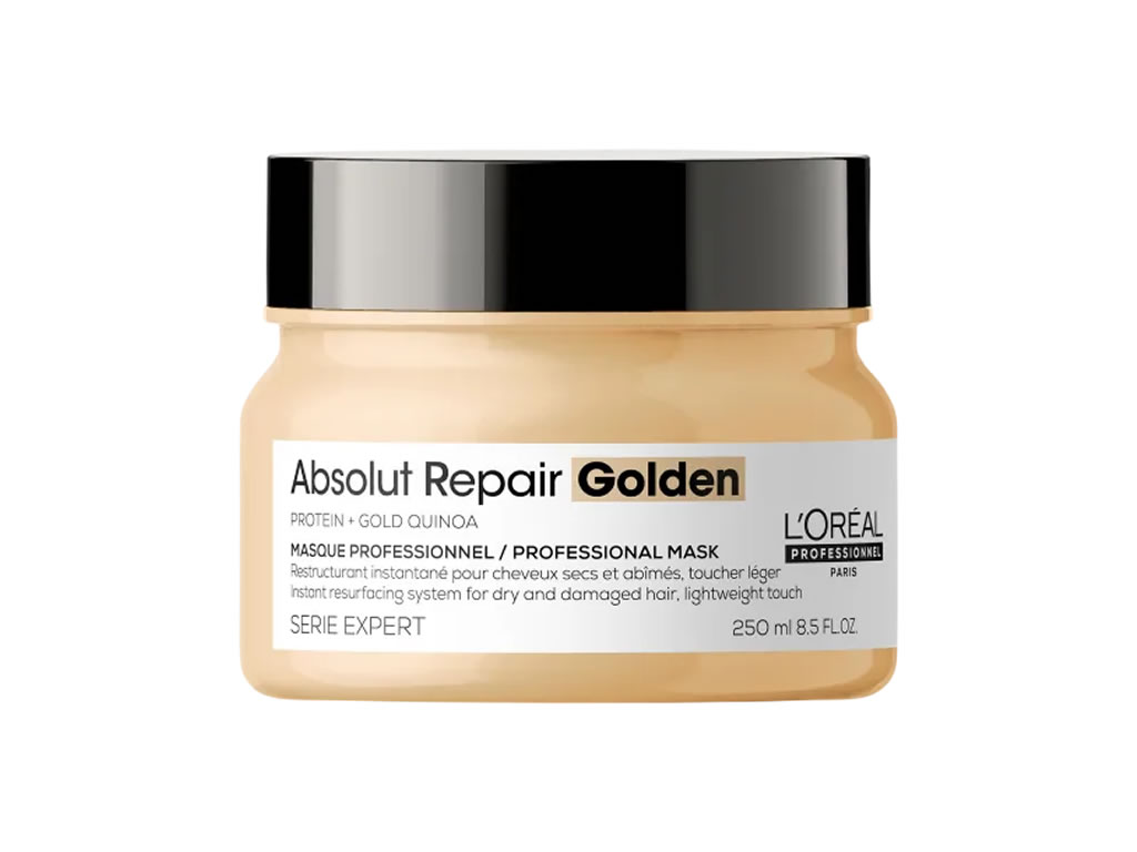 A Máscara Absolut Repair Gold Quinoa + Protein Golden L'Oréal Professionnel atua na reparação da fibra capilar para que o cabelo revele uma aparência mais saudável. Sua textura inovadora permite unir o poder de tratamento dos ativos com a leveza de um gel, e as partículas douradas conferem brilho intenso aos fios. Assim, a máscara é perfeita para quem precisa tratar, mas não gosta da sensação de peso do pós-tratamento.