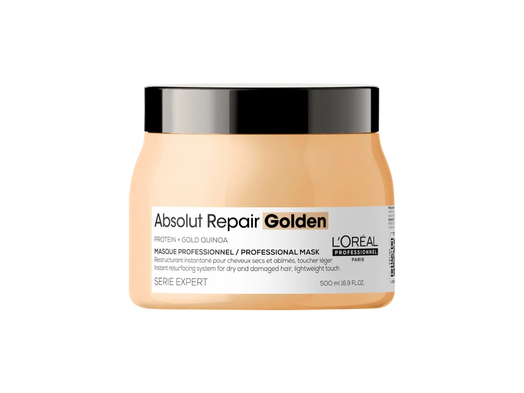 Máscara de tratamento em creme-gel para cabelos finos danificados. Por ter textura leve, L'Oréal Professionnel Serie Expert Absolut Repair Golden restaura sem pesar, até mesmo os fios mais finos.