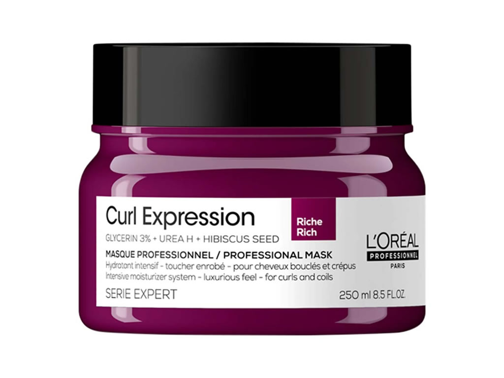 Máscara de tratamento para cabelos cacheados e crespos, controla o frizz e proporciona fios 2x mais hidratados. A Máscara de Tratamento L'Oréal Professionnel Serie Expert Curl Expression Rich confere cabelos intensamente hidratados e desembaraçados. Sua fórmula conta com Glicerina 3% e Urea H que que auxiliam na retenção de hidratação nos cabelos, e Semente de Hibisco, uma fonte de aminoácidos e vitaminas que irão revitalizar e proteger os fios.