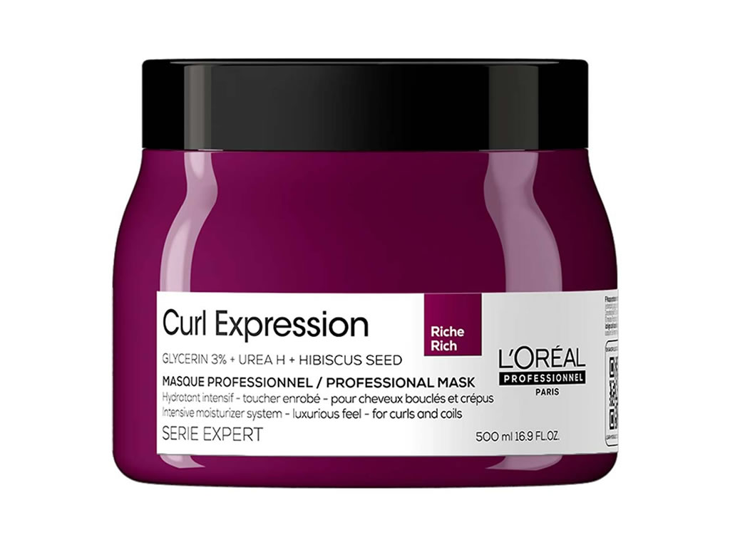 Máscara de tratamento para cabelos cacheados e crespos, controla o frizz e proporciona fios 2x mais hidratados. A Máscara de Tratamento L'Oréal Professionnel Serie Expert Curl Expression Rich confere cabelos intensamente hidratados e desembaraçados. Sua fórmula conta com Glicerina 3% e Urea H que que auxiliam na retenção de hidratação nos cabelos, e Semente de Hibisco, uma fonte de aminoácidos e vitaminas que irão revitalizar e proteger os fios.