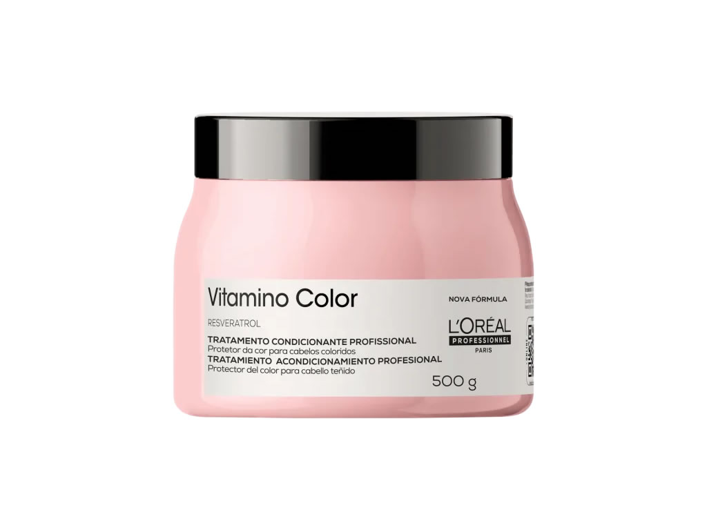 Máscara para cabelos coloridos. L'Oréal Professionnel Serie Expert Vitamino Color proporciona hidratação, proteção da cor e devolve a maciez e brilho intenso aos fios.