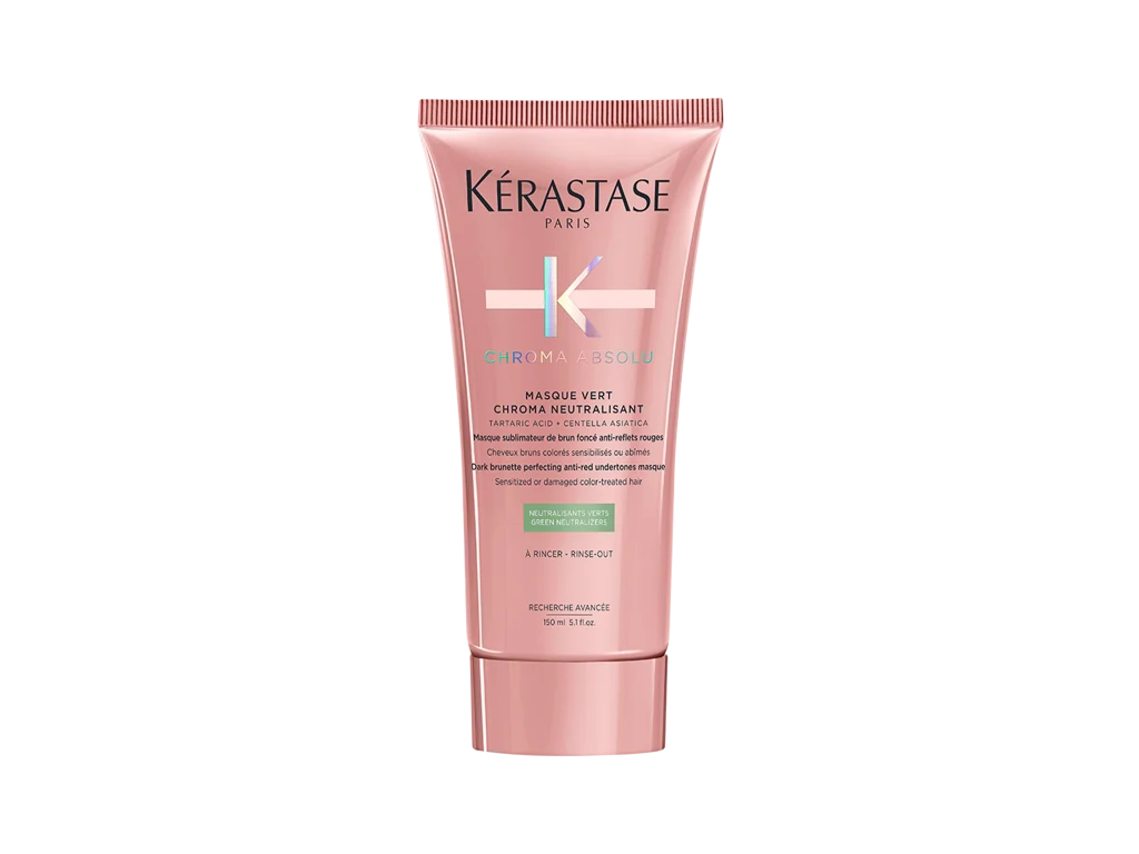 Máscara neutralizante para cabelos escuros. Kérastase Chroma Absolu Vert Neutralisant é ideal para minimizar os tons vermelhos e acobreados, que aparecem com a oxidação do tempo e manter a cor do fio moreno mais frio e vibrante.A ...
