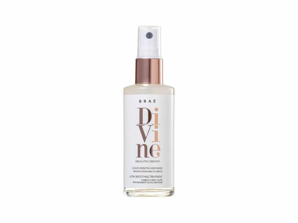 Máscara líquida para cabelos com frizz. Braé Divine Máscara Líquida hidrata, desembaraça, sela as cutículas e reduz o frizz.