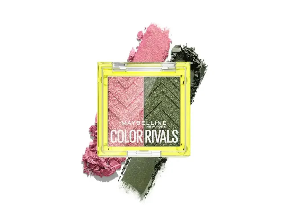 Apresentando a nova linha Color Rivals Shadow Duo da Maybelline – o segredo para desbloquear o contraste de cores na maquiagem dos olhos. A linha 4 Color Rivals Eyeshadow Duo, que reúne alguns dos tons de sombra mais brilhantes e inesperados, apresenta sombras brilhantes e foscas para combinar com seu vestido, humor e apimentar todo o seu visual.