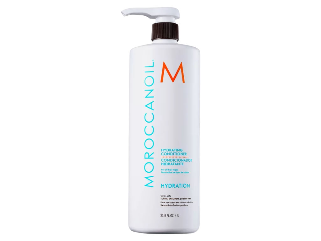Além de repor a hidratação perdida, Moroccanoil Hydrating Conditioner ajuda a proteger a cor dos fios com sua fórmula sem sulfatos, fosfatos e parabenos.
