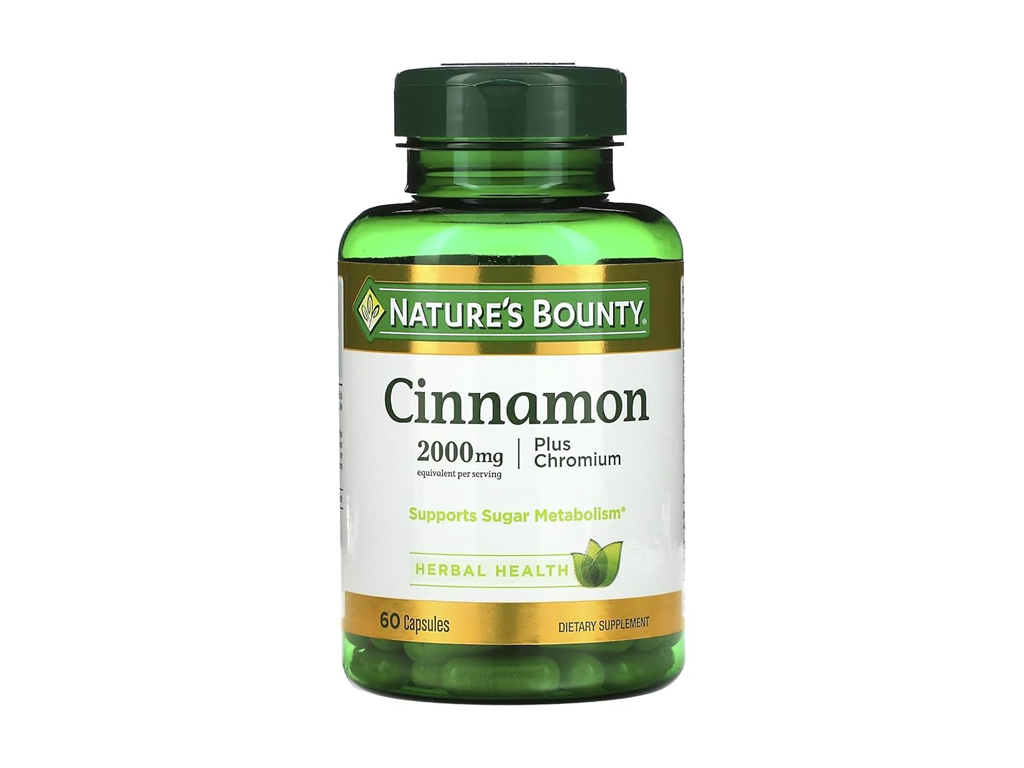 Aumente o metabolismo do açúcar com as cápsulas de Canela Plus Cromo da Nature's Bounty.