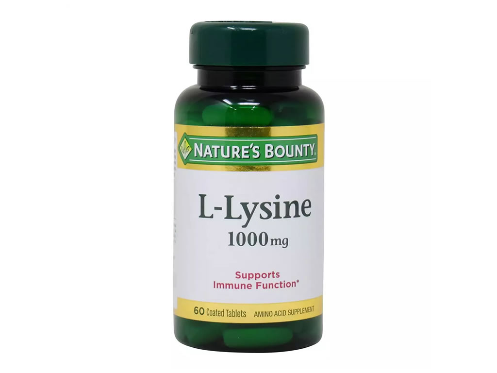 Cada dose única de L-Lisina, da Nature's Bounty, fornece até 1.000 mg de L-Lisina na forma de Cloridrato de L-Lisina.