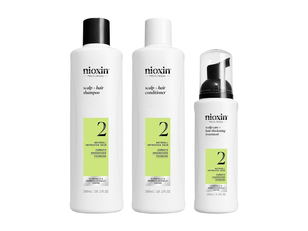Nioxin Cleanser Shampoo 2 (300ml): remove sebo e resíduos ambientais do couro cabeludo e dos cabelos.