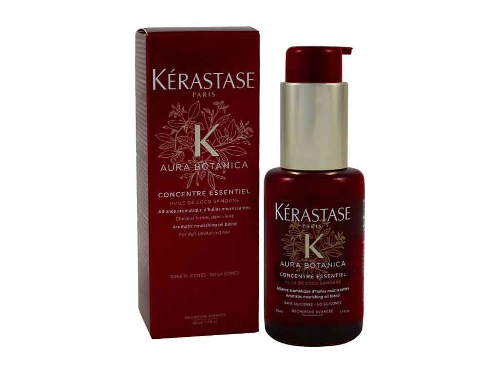 Kérastase Aura Botanica Concentré Essentiel é uma Concentração de Óleos 99% natural que ajuda a nutrir ainda mais os cabelos. Além de ajudar na nutrição como potencializador do condicionador, também serve como pré-shampoo e até mesmo como óleo para massagem, pois nutre também a pele. Sua fórmula rica faz com que a nutrição da pele e dos cabelos voltem ao normal. Kérastase Aura Botanica Concentré Essentiel Concentração de Óleos dá brilho e maciez para os cabelos, além de retirar todo o frizz.