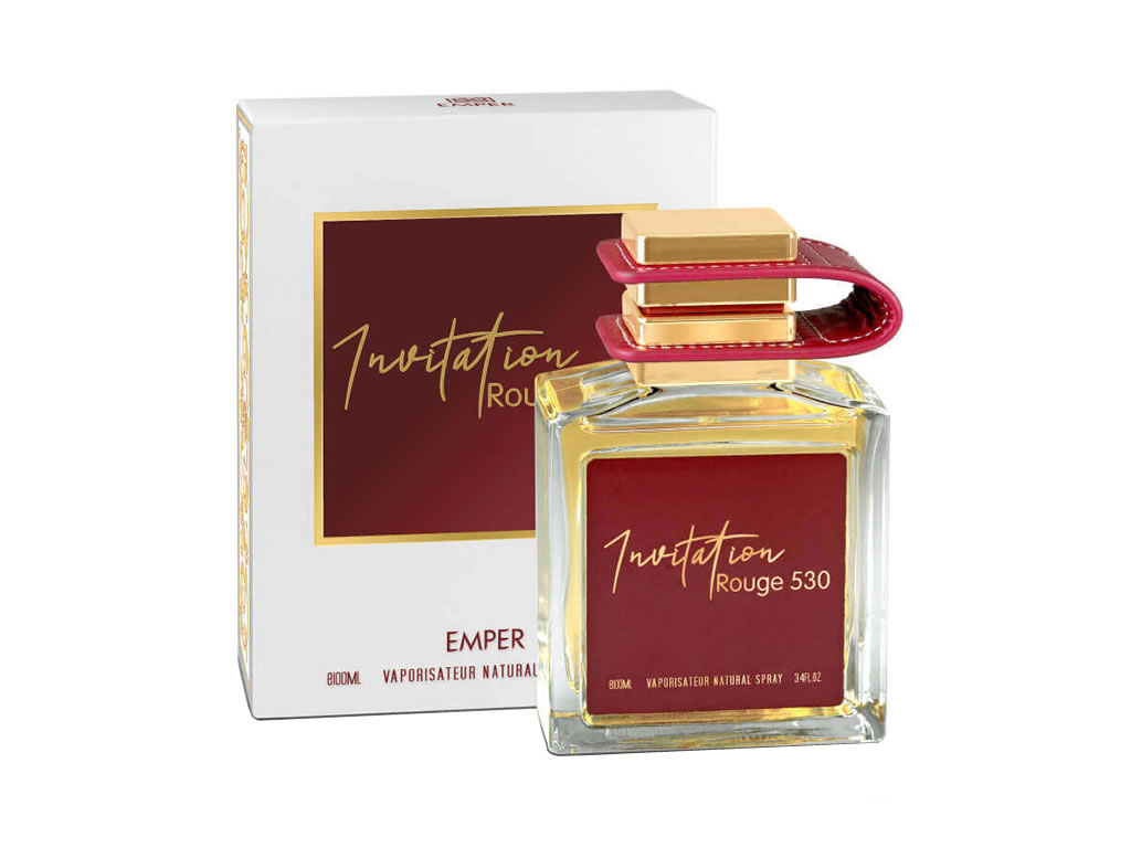 Moderna. Atraente. Feminina. Invitation Rouge 530 de Emper é uma fragrância envolvente que destaca a sensualidade da mulher autêntica.