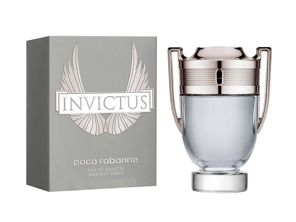 Um Perfume Amadeirado Aquático com uma fragrância extremamente texturizada. Duas forças inesperadas agem em conjunto: Êxtase e Vício. A fragrância do perfume Invictus é pura energia, tão vibrante como uma carga de adrenalina. A casca de pomelo junto com folhas de louros e um acorde marinho são responsáveis pelo toque de refrescância, complementados pela madeira de guaiac, patchouli e um acorde de âmbar cinza que conferem sensualidade e masculinidade à fragrância Paco Rabanne.