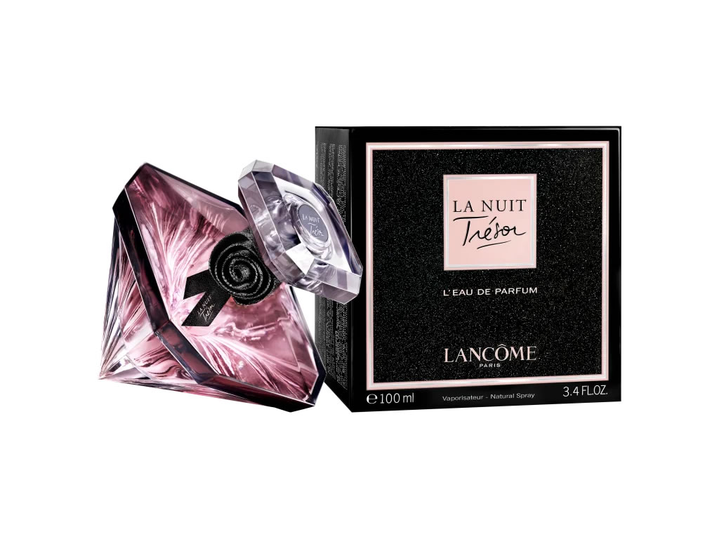 O tradicional Trésor agora em sua versão La Nuit: o primeiro gourmand afrodisíaco da marca, por despertar a paixão irresistível entre aqueles que se amam. O frasco do La Nuit Trésor Lancôme, traz um diamante negro: uma bela joia noturna, proveniente da colisão de duas estrelas atraídas uma pela outra, que contrasta com o céu estrelado.
