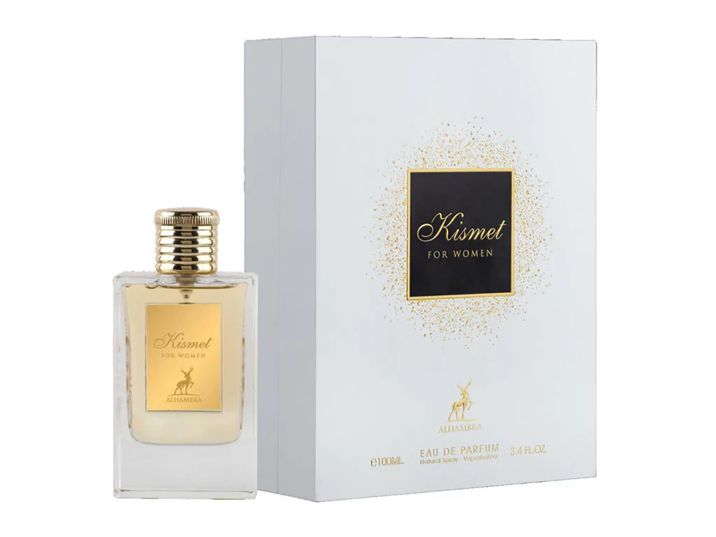 Kismet for Women de Maison Alhambra é um perfume Feminino.As notas de topo são: Damasco, Rosa e Jasmim.As notas de coração são: Tuberosa e Narciso.As notas de fundo são: Âmbar e Cedro.