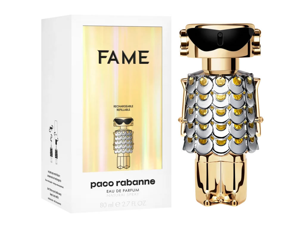 O Perfume Fame, de Paco Rabanne, consegue capturar a essência do espírito da mulher parisiense. O aroma é um mix de Jasmim puro, Manga com um toque de sensualidade, de incenso cremoso.