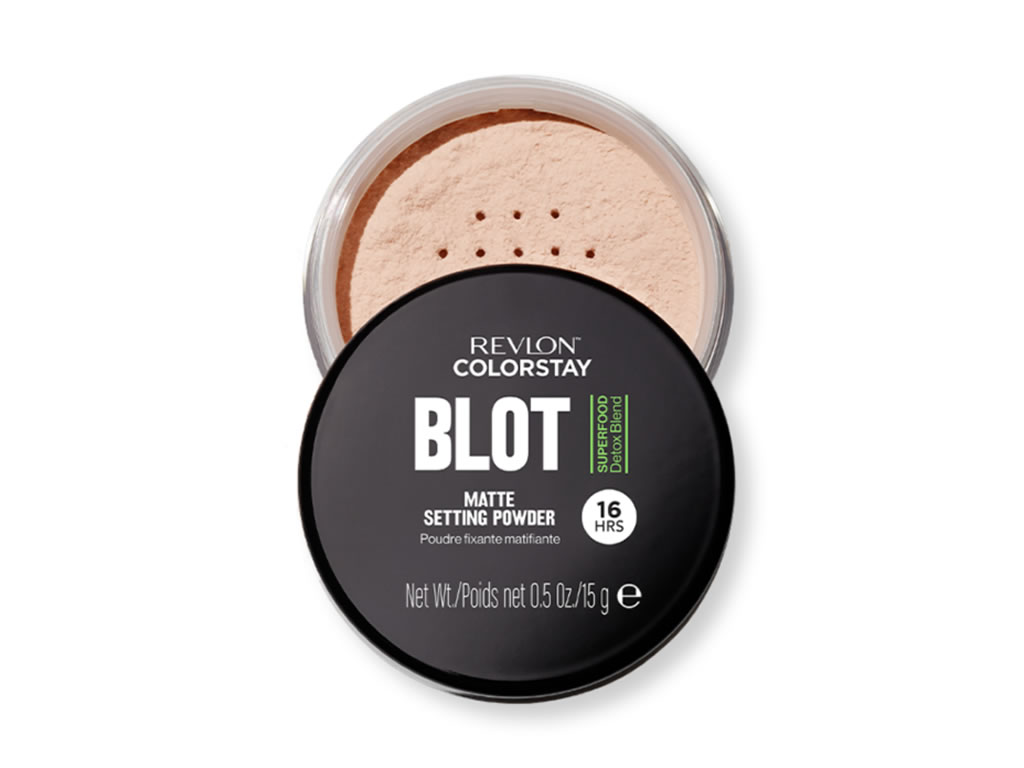 O Revlon ColorStay™ Blot Setting Powder é um pó matificante fundido com uma mistura de proteção que fornece um efeito mate ininterrupto por até 16 horas.