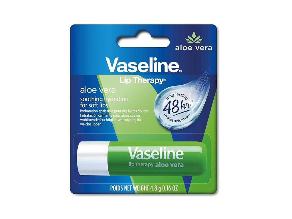 Terapia labial com aloe vera e vaselina. Hidratação calmante para lábios macios. Com um toque de aloe vera, o Vaseline Lip Therapy Aloe Vera terá um efeito calmante, deixando seus lábios macios e hidratados. Vitamina E - ajuda a cuidar de lábios mais saudáveis. Geléia de petróleo - retém a umidade. Extrato de aloe vera - ajuda e hidrata os lábios secos.