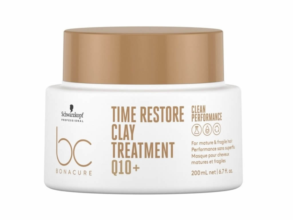 Schwarzkopf BC Q10+ Time Restore Clay Treatment Mask 500ml é um tratamento capilar antienvelhecimento e fortalecedor, especialmente desenvolvido para cabelos maduros frágeis. Formulada com uma mistura exclusiva de ingredientes Schwarzkopf Professional - o complexo Q10+, juntamente com queratina vegana e Tecnologia Cell Equalizer -, esta máscara proporciona um cuidado intenso para os cabelos maduros.
