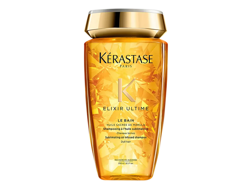 Shampoo para cabelos sem brilho. Kérastase Elixir Ultime Le Bain traz os nutrientes necessários para proporcionar luminosidade e maciez. Garante um banhar luxuoso, que remove impurezas e partículas de poluição por completo.
