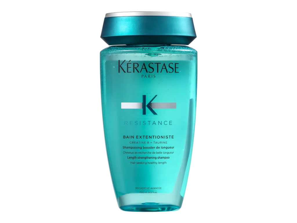 Shampoo para fios danificados e de crescimento lento. Kérastase Résistance Bain Extentioniste estimula o aumento do comprimento enquanto fortalece. Para um cabelo mais saudável e com a fibra saudável.
