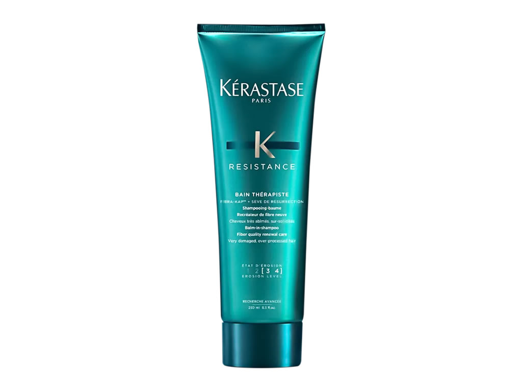 Kérastase Résistance Bain Thérapiste age desde a parte interna das fibras capilares para recuperar intensamente a saúde dos fios. Seu cabelo fica limpo, mais resistente, mais forte e macio. Perfeito para fios sobrecarregados com químicas e uso de ferramentas térmicas sem proteção.