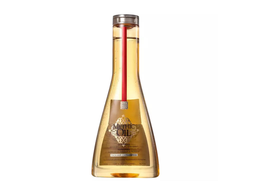 Shampoo para cabelos grossos. L'Oréal Professionnel Mythic Oil limpeza delicada que disciplina os fios com nutrição intensa e dá brilho e maciez duradouros.