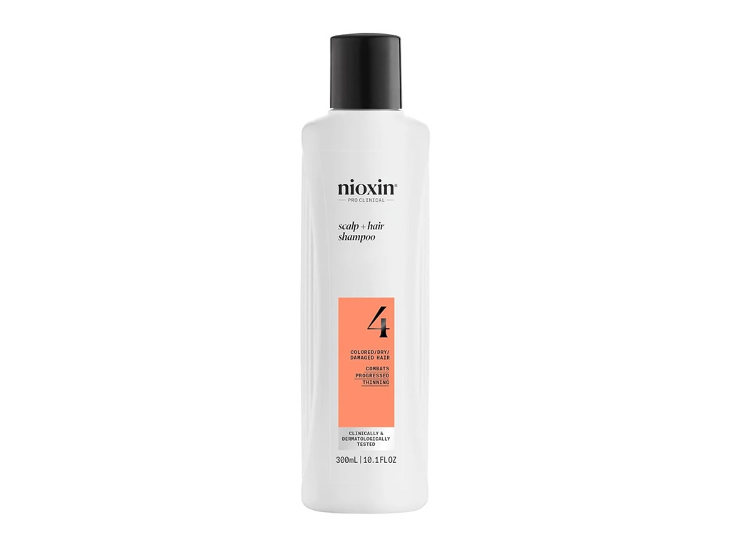 Shampoo para cabelos tingidos e com afinamento progressivo. Nioxin Sistema 4 Cleanser equilibra o couro cabeludo e a hidratação enquanto encorpa os fios. Remove oleosidade, impurezas e desobstrui os poros para permitir um crescimento ideal. É indicado para quem sofre com rarefação já visível.