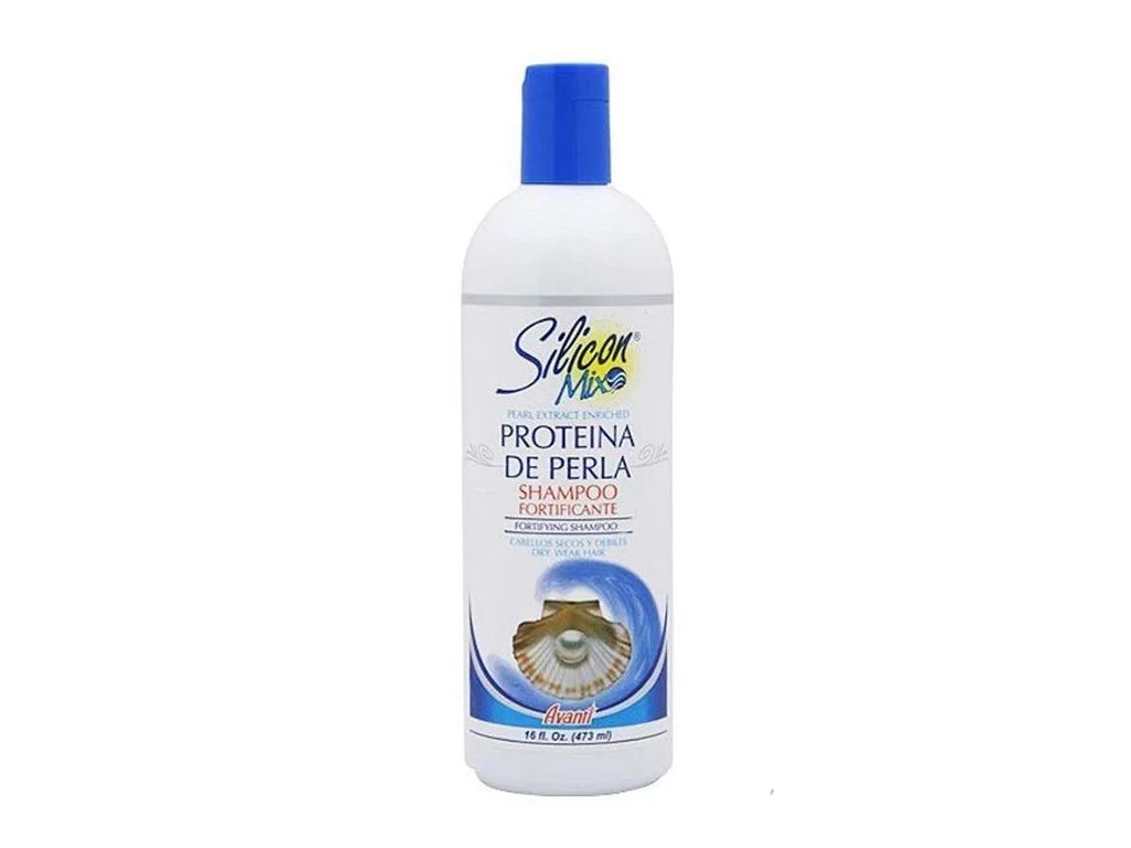 Shampoo para cabelos secos, fracos e quebradiços, em tamanho salão. Silicon Mix Proteína de Perla Shampoo Fortificante limpa e fortalece os fios com uma fórmula cheia de nutrientes. Ele reestrutura os fios internamente, bem ...