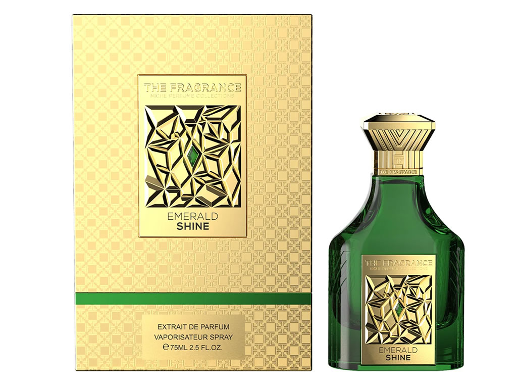 Emerald Shine de The Fragrance é um perfume Oriental Compartilhável. As notas de topo são: Mandarina, Toranja e Bergamota. As notas de coração são: Zimbro, Cardamomo, Açafrão e Olíbano. As notas de fundo são: Nagarmota ou Óleo de Cipriol, Patchouli, Vetiver, Cedro, Madeira Guaiac, Agarwood (Oud), Couro, Âmbar e Almíscar.