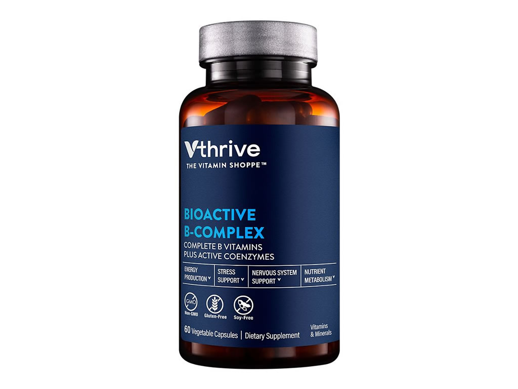 Vthrive™ O Vitamin Shoppe® Bioactive B-Complex é uma mistura de vitamina B de alta potência que promove a produção de energia e o metabolismo de nutrientes enquanto fornece suporte ao estresse e ao sistema nervoso. Esta fórmula avançada é fornecida na forma de coenzima pronta para o corpo, permitindo que seu corpo a processe mais facilmente para uma utilização mais eficiente.