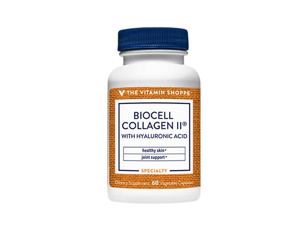 A suplementação com a marca BioCell Collagen II® da The Vitamin Shoppe® é uma maneira fantástica de manter seu brilho jovem e passos elásticos. Estas cápsulas vegetais não transgênicas contêm uma mistura de colágeno hidrolisado tipo II, sulfato de condroitina e ácido hialurônico para promover a saúde da pele e das articulações.