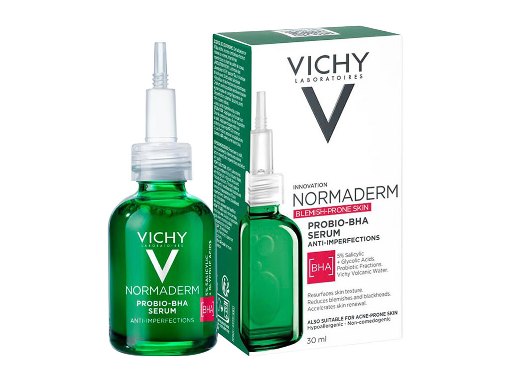 Vichy Normaderm Probio BHA Sérum Anti imperfeições corrige as imperfeições da pele causadas pela acne hormonal.