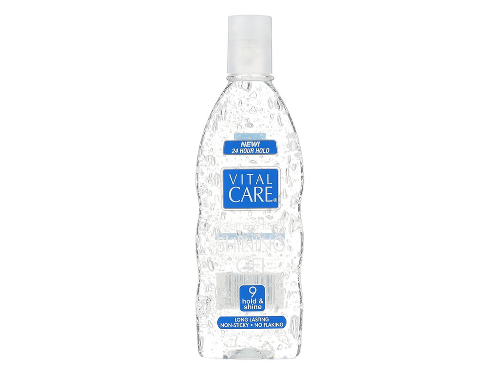 Gel Modelador Vital Care Extra Brilho. Gel brilhante com volume e brilho Vital Care, proteína e pró-vitaminas. Adiciona volume, corpo, textura e fixação. Define todos os estilos de cabelo. Proporciona brilho incrível e adiciona um brilho intenso. Nunca gruda ou gruda. Protege com proteína de queratina e pantenol (agente fortalecedor de pró-vitamina B-5) com o mais alto grau de resistência à umidade.