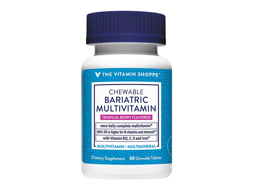 Quem diria que obter uma dose completa de bondade poderia ser tão fácil e tão delicioso? Formulado especificamente para as necessidades nutricionais de pacientes de cirurgia para perda de peso, este multivitamínico completo da marca The Vitamin Shoppe ® fornece 100% ou mais do valor diário de 18 vitaminas e minerais, incluindo vitamina B12, C e D. Este mastigável uma vez ao dia também contém 9 mg de ferro.