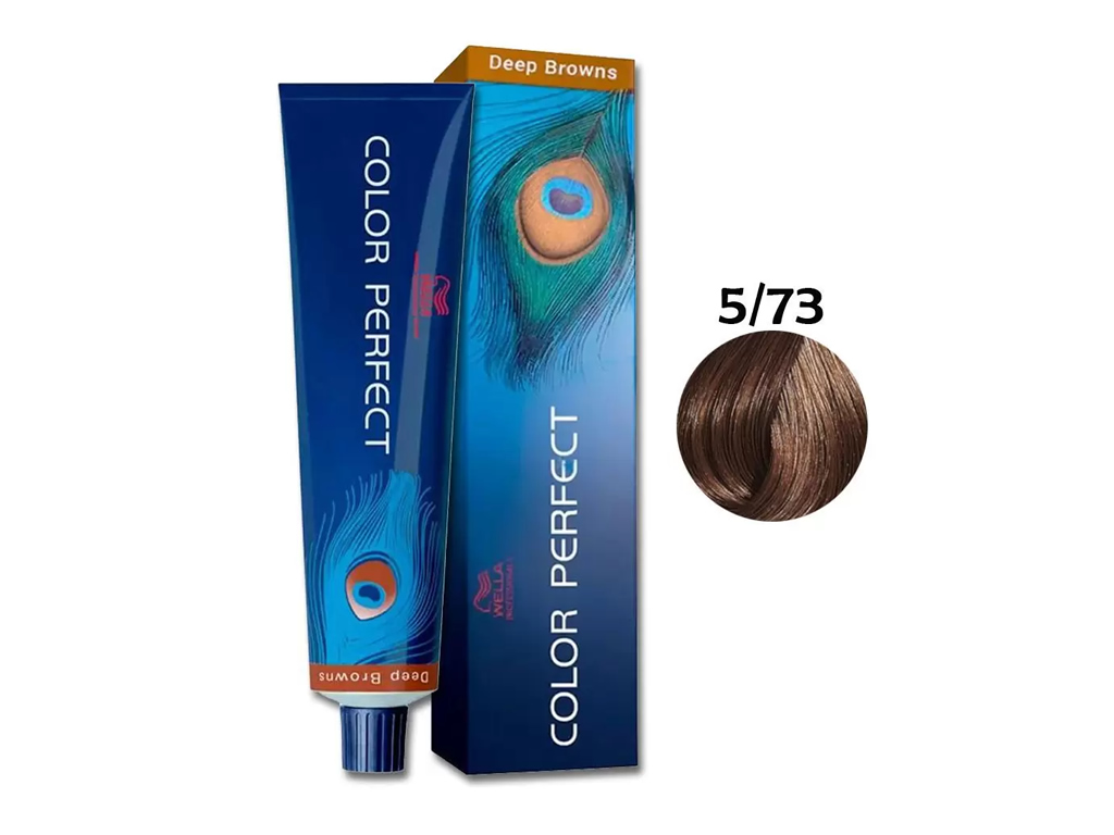 WELLA COLOR PERFECT 5/73 COLORAÇÃO CASTANHO CLARO MARROM DOURADO 60G Color Perfect Tintura em creme foi desenvolvida especialmente para garantir uma coloração perfeita com cobertura 100% dos fios brancos com uniformidade da raiz às pontas. Wella Color Perfect garante ...